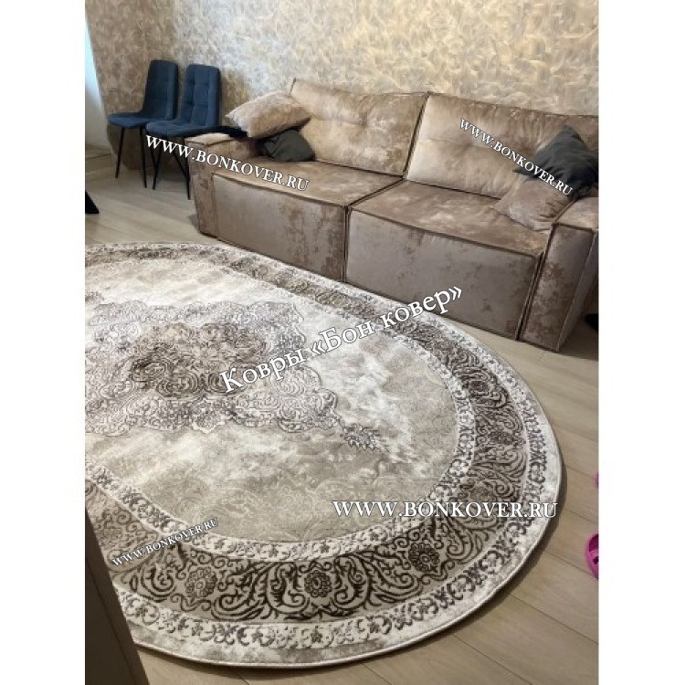Овальный Бежевый ковер для гостиной Арт 25477 New